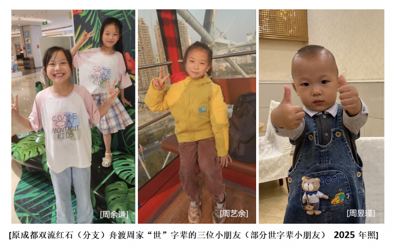 [Three children of the Zhou family's "Shi" generation (some children of the Shi generation) from the original Chengdu Shuangliu Hongshi (branch) boat crossing in 2025]